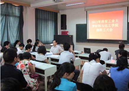 2011年9月2日,永利23411集团在院多媒体教室召开了全体教职工大会,会议由院工会主席夏峰主持,期间主要讨论了«学院津贴分配方案»及《学院实验室发展》工作报告,并高票通过了«学院津贴分配方案»。大会在齐唱国歌声中拉开序幕。