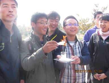 此次活动囊括4项小实验:游曳的火龙、喷雾作画、烧不坏的手帕、制作固体酒精。参赛选手在工作人员的指导下,有条不紊的完成了实验。奇妙的化学现象,让在场的同学都惊叹不已,把现场气氛一次次地推向了高潮.最终,记录员通过记录选手的实验操作、步骤及结果,给予评分,并颁发相应奖品。