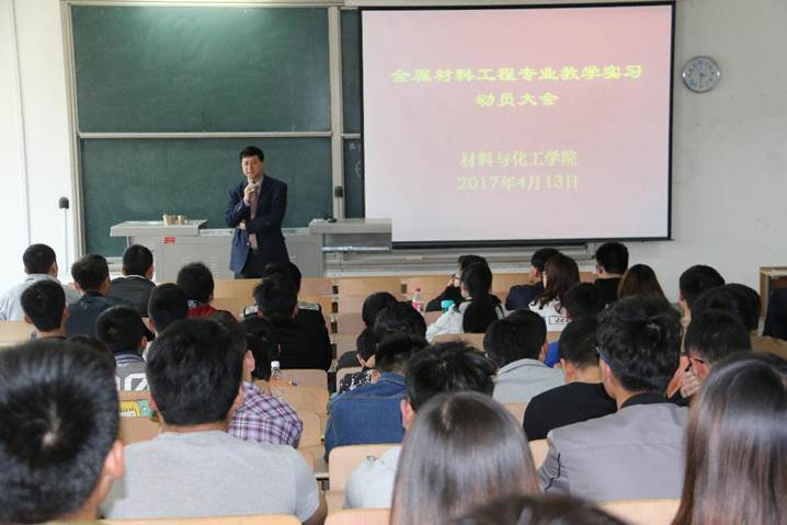 4月13日,永利23411集团在教2-405召开2014级金属材料工程专业教学实习动员大会,此次大会由带队老师夏峰主持,永利23411集团党委书记路金龙出席此次大会并发表讲话,带队老师许军锋、何子博、宇红雷、辅导员陈远林、2014级金属材料工程全体学生参加了此次大会。