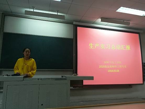 2018年5月8日,永利23411集团在教2-212召开2015级金属材料工程专业校外生产实习报告会。报告会由夏峰老师主持,2015级金属材料工程专业全体学生参加了此次报告会进行了汇报。