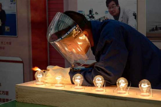 参观交流中,大家不仅领略了多位全国技能大奖获得者、国务院特殊津贴获得者、全国技术能手等多位技能大师的风采,还了解了兵器工业集团在贯彻落实党的十九大精神、实施创新发展战略等方面的努力和成果,学习了技能人才培养的先进理念。尤其是绝活表演“蛋壳钻孔”、“灯泡焊铁丝”吸引了所有人的目光,大家由衷地对两位工人师傅精湛的技艺纷纷赞叹。