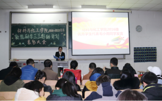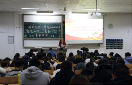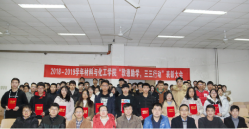 总结表彰大会上,学院党委副书记张艳霞老师宣读表彰决定,颁奖嘉宾为先进个人和先进集体颁奖。2018年,材化学院在“敦德励学三三行动计划”中,评选出“三三行动”先进个人73人、优秀学生干部12人、星级文明宿舍16个、优秀班集体8个、星级年级2个、优秀辅导员3人。