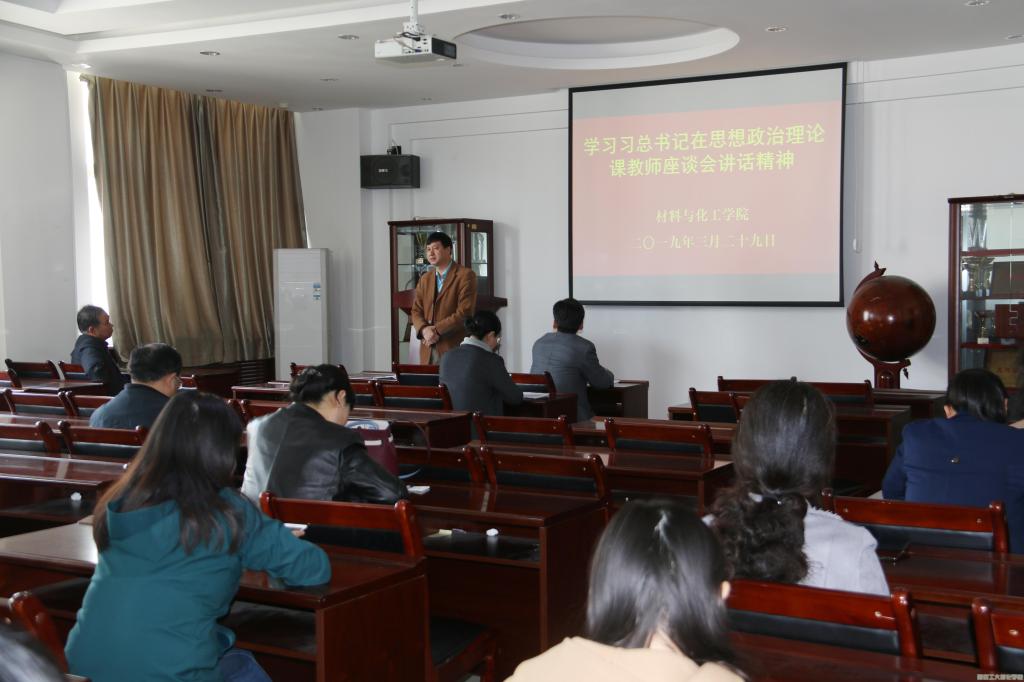2019年3月29日下午,材化学院在工3-404会议室召开学院大会,组织全体教师学习习近平总书记在学校思想政治理论课教师座谈会上重要讲话精神,会议由学院党委书记路金龙主持。