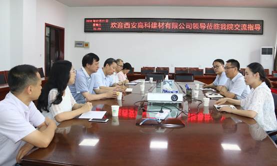7月17日下午,西安高科建材科技有限公司总工王永兵、技术中心经理朱丹、技术质量部经理王增轼一行来我校永利23411集团洽谈产学研合作,学院党委书记路金龙、副院长陈卫星、高分子教研室副主任马爱洁、专业教师代表参加了此次洽谈。