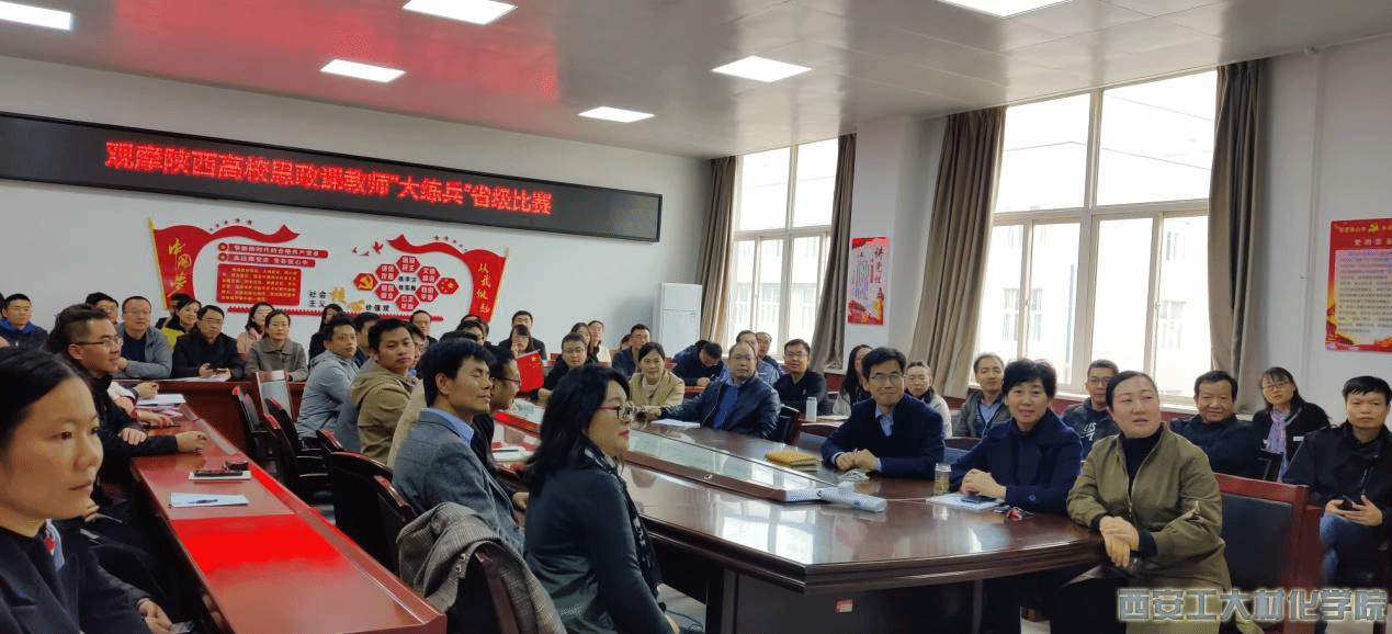 2020年11月12日,永利23411集团全院教师在工3-410观看陕西高校思政课教师“大练兵”省级比赛,集体观摩参赛老师在思政课程教学中的精彩展示,学习思政教学好经验、好方法。材化学院教师吕煜坤代表永利yl23411集团参加了本次本科课程思政组省级比赛。