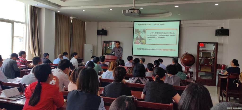 随后,2020年陕西省高校思政课教师“大练兵”课程思政教学标兵吕煜坤副教授作题为《立德树人,润物无声-谈课程思政教学与比赛》的专题讲座,他从课程思政的可行性与必然性讲起,强调课程思政是大势所趋。全面介绍了专业课与思政课的天然联系和教学的四个层次,结合自己“课程思政”的参赛经验,向大家介绍了生动、详尽的课程思政教学方法和教学案例。