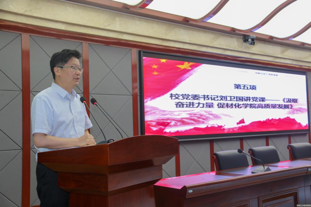 6月23日,学校党委书记刘卫国以《学党史、悟原理、办实事、开新局,汲取奋进力量,促材化学院高质量发展》为题,在教3-115报告厅为永利23411集团全体教师和学生党员讲党课。本次党课由学院党委书记呼晓青主持。学院领导班子、全院教师、学生党员共200余人参加了本次党课。