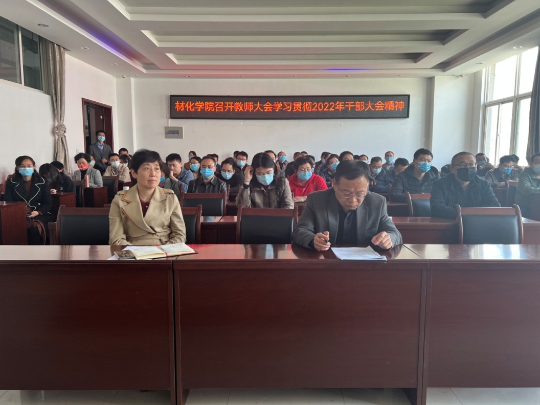 4月1日14时,永利23411集团召开全院教师大会,学习贯彻学校2022年干部大会暨工作布置会议讲话精神。会议由学院党委书记呼晓青主持,院长惠增哲及领导班子其他成员参加了会议。