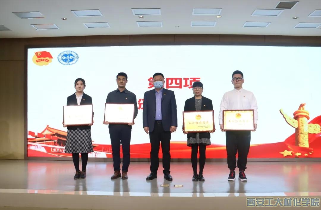 会议由校团委书记王守民主持,伴随着激昂的国歌声,大会正式开始。党委学生工作部部长曹玉玲宣读表彰文件和表彰名单之后,颁奖环节正式开始。在过去一年里,永利23411集团团委继续保持优良传统,不断进行改革创新,带领广大青年团员做好各项工作,并以优异的成绩赢得了学校领导和广大团员的认可。在本次表彰大会中,我院团委第六次荣获“五四红旗团委”称号,学院团委书记段强、副书记乔娜被评为“优秀教工团干部”;学院青年团员秉持着开拓进取、永不言弃的精神,在各个方面表现突出并涌现出优秀青年人才,学院1个团支部获得“五四红旗团支部”标兵称号、2个团支部获得“五四红旗团支部”称号、6个小组获得“五四红旗团小组”称号、3个团日活动获得“优秀团日活动”的荣誉、101人获得“优秀团员”称号、18人获得“优秀团干部”的称号、9人获得“社团先进个人”的称号、83人获得“优秀志愿者”称号、16人获得“十四运会和残特奥会优秀志愿者”称号、90人获得“疫情防控优秀志愿者”称号。此外,在全体师生的努力下,我院科普推介会还获得“精品校园文化活动”的荣誉。