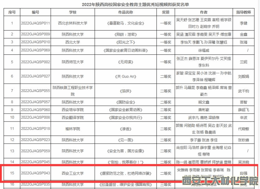 2022年4月7日至13日,我院围绕“守护青春,感悟新时代国家安全成就”主题,精心制作微电影、宣传教育短视频参加陕西高校国家安全教育主题优秀短视频征集活动,全省共135个作品入围,经过一个月的评比,我院2个微电影视频分别荣获省级二等奖和省级三等奖。
