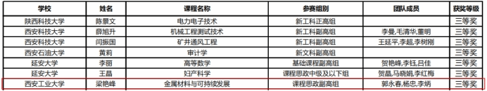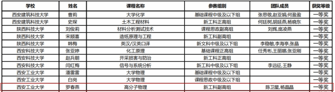 2023年11月16日,陕西省教育厅公布了第五届陕西本科高校教师教学创新大赛获奖教师名单,我院教师罗春燕(团队)获省级一等奖,梁艳峰(团队)获省级三等奖。