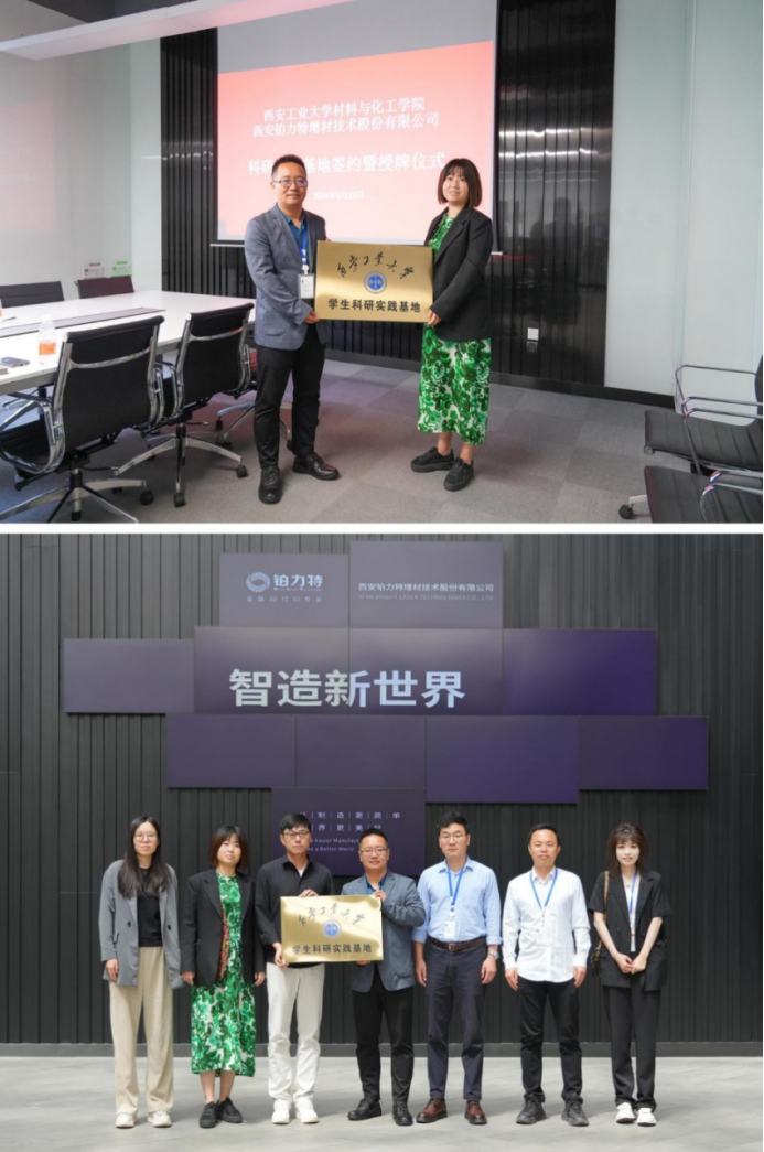 4月23日上午,永利23411集团副院长杨巍、金属材料工程专业主任刘永勤,副主任周颖惠和任永明老师前往西安铂力特增材技术股份有限公司(简称“铂力特“)参加“科研实践基地”签约仪式。铂力特公司人力资源部总监杨利娜、技术研发部部长助理史超和人力资源部招聘专员贺梦娟出席签约仪式。