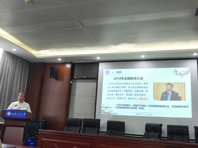陈卫星教授分别讲了教师内涵发展、师德师风的内涵、好教师的“四有”标准,结合自身的教学和科研经历他鼓励大家以德立教、用亲和之心架设教育之桥、用仁爱之心关爱学生,最后他提出“坚持教书育人、立德树人,坚持学习,不断提升自我修养,坚持产学研结合的办学之路,坚持团队建设”与全院老师共勉。学院老师通过此次报告深受鼓舞,下定决心为学校教育事业高质量发展作出积极贡献。