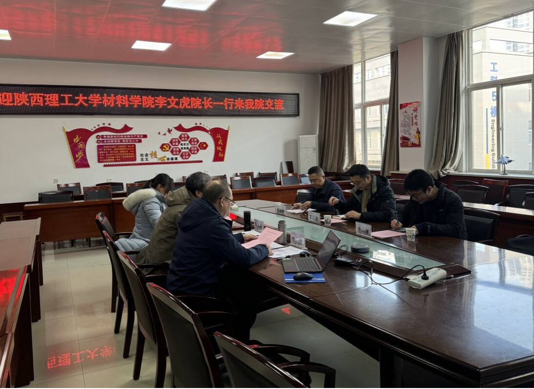 陈卫星代表学院对李文虎一行来访表示热烈欢迎。李文虎院长介绍了陕西理工大学材料学院的基本情况、学位点建设进展和未来发展规划,希望双方在博士点建设、人才培养、科学研究等方面开展深入合作,实现优势互补、互利共赢。杨忠院长围绕调研目的,详细介绍了学院的学科建设、科研成果及人才培养等情况。他表示,希望双方以此次交流为契机,深化合作交流。