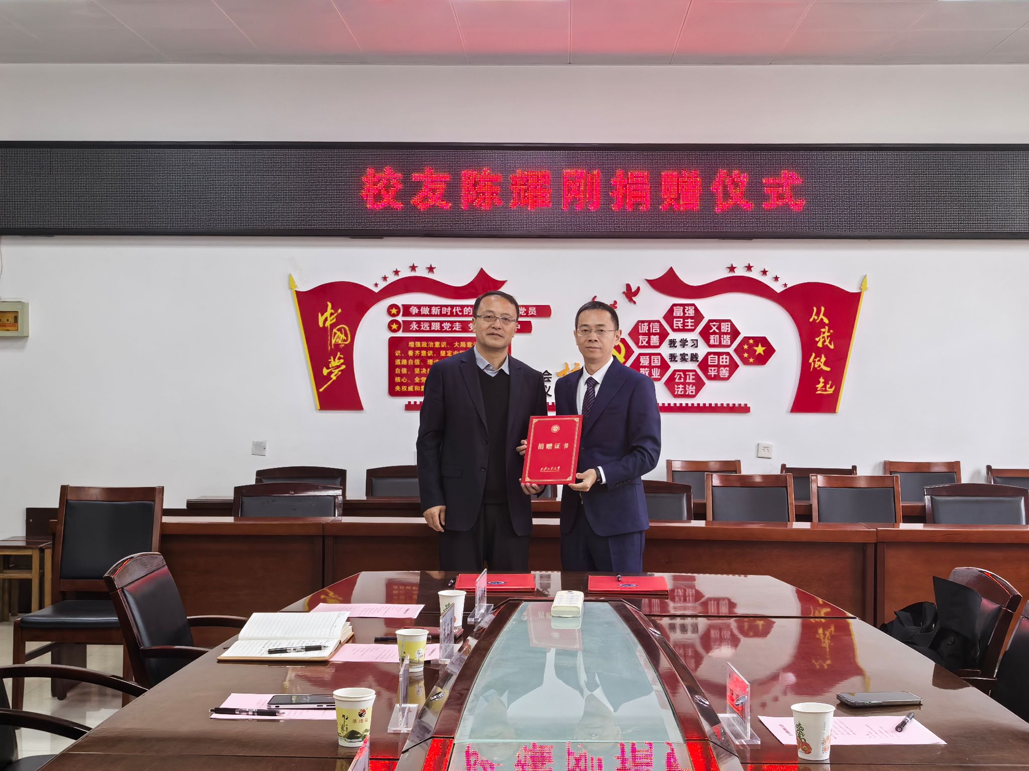 陈耀刚系我校热加工工艺及设备专业校友,现担任深圳市康弘智能健康科技股份有限公司董事长、总经理,兼任技术总监。他说,本科求学期间工程制图、物理化学等课程培养了其扎实的理论基础和工程实践能力,为后续职业生涯的成功奠定了基础。他提出,企业应践行社会公益,与母校携手产学研融合,是双赢之举,并宣布今后将继续以个人或企业名义持续为母校捐赠,进一步推动校企合作和母校学科发展。