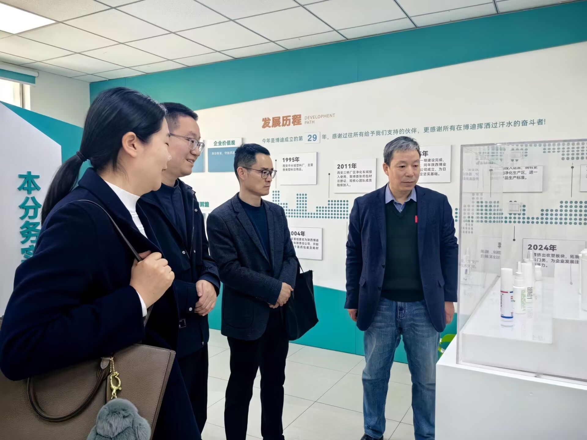 博迪塑胶责任有限公司张迪总经理带领各位老师参观了模具加工、注拉吹、注塑、注吹及印刷等车间,了解了企业产品的生产、检测情况。参观后,双方就产学研相关问题开展了深入的交流。