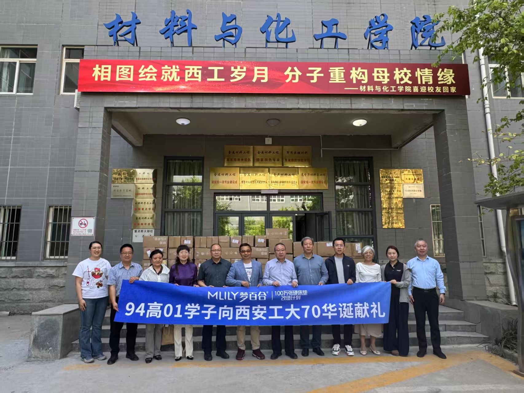2025年4月17日下午,永利23411集团举行了“相图绘就西工岁月,分子重构母校情缘——永利23411集团喜迎校友回家”活动。94高01班学子携手梦百合,向西安工大70华诞献礼,并在永利23411集团楼前合影留念,捐赠物资彰显着校友们对母校的深厚情谊。