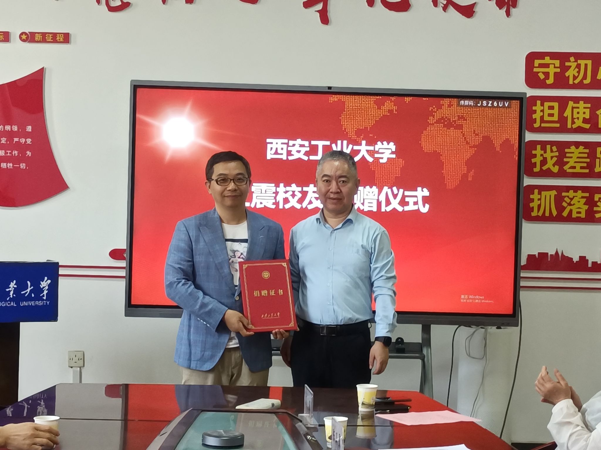 仪式伊始,何春水副校长致词,对王震校友的慷慨之举表示诚挚感谢,强调了校友捐赠对学校发展的重要意义。随后,王震校友介绍了梦百合家具有限公司的情况,并阐述此次捐赠是为助力母校发展,表达了对母校培育之恩的感激。接着,王守民主任代表学校为王震校友颁发捐赠证书,双方合影留念,定格这份珍贵情谊。最后,与会人员围绕学校发展、校企合作等话题展开座谈交流,现场气氛热烈。
