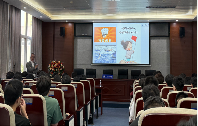 座谈会上,中国航天科工集团航天材料应用技术研究院副院长邹军锋研究员以航天级气凝胶技术为核心,结合高速飞行器、长征5号火箭等实践案例,深入剖析气凝胶技术的发展脉络,并前瞻性地展望其在建筑、工业、新能源等国民经济领域的广阔应用前景;重庆大学电气工程学院尹志刚教授围绕有机薄膜电子学在能源与信息交叉领域的前沿研究展开学术报告,并结合自身科研实践与求学经历,激励在场学子要将个人职业理想与国家社会发展需求相结合,在服务国家战略需求的征程中实现人生价值;麦德安医疗设备有限公司总经理李军以幽默风趣的语言,生动讲述了自己的创业动机、充满挑战的创业经历与深刻的创业感悟,并现场寄语:“人生很长,没有什么是你可以永远依靠的,与其碌碌无为不如轰轰烈烈!”