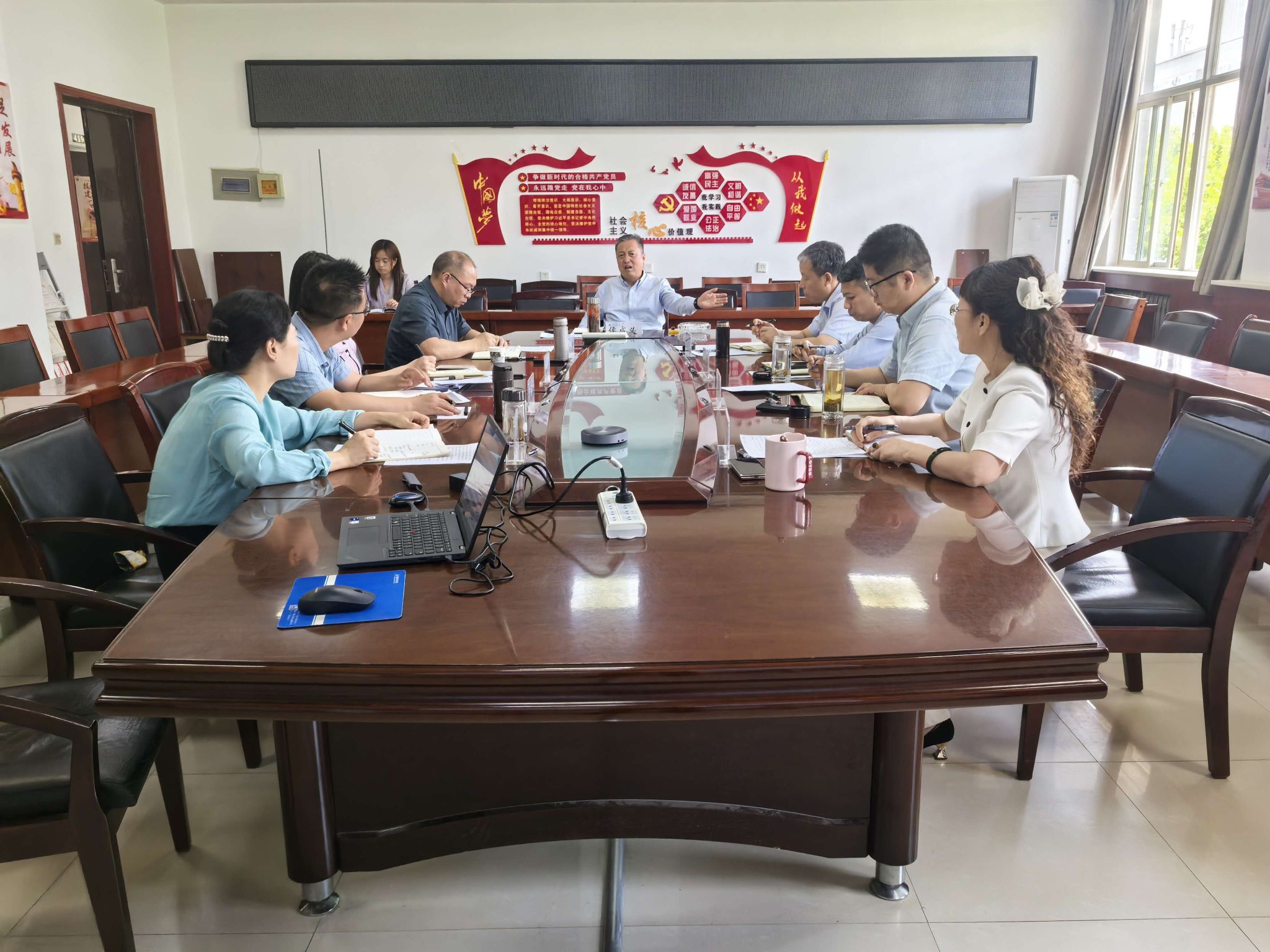 在随后召开的座谈会上,杨忠院长从学科建设、师资队伍、科学研究、教育教学、人才培养、保障体系及未来发展规划等方面,对学院工作进行了全面汇报。汇报结束后,院领导班子成员围绕实验室建设、学科发展等关键议题,与侯成义书记及职能部门负责人展开深入交流与探讨。