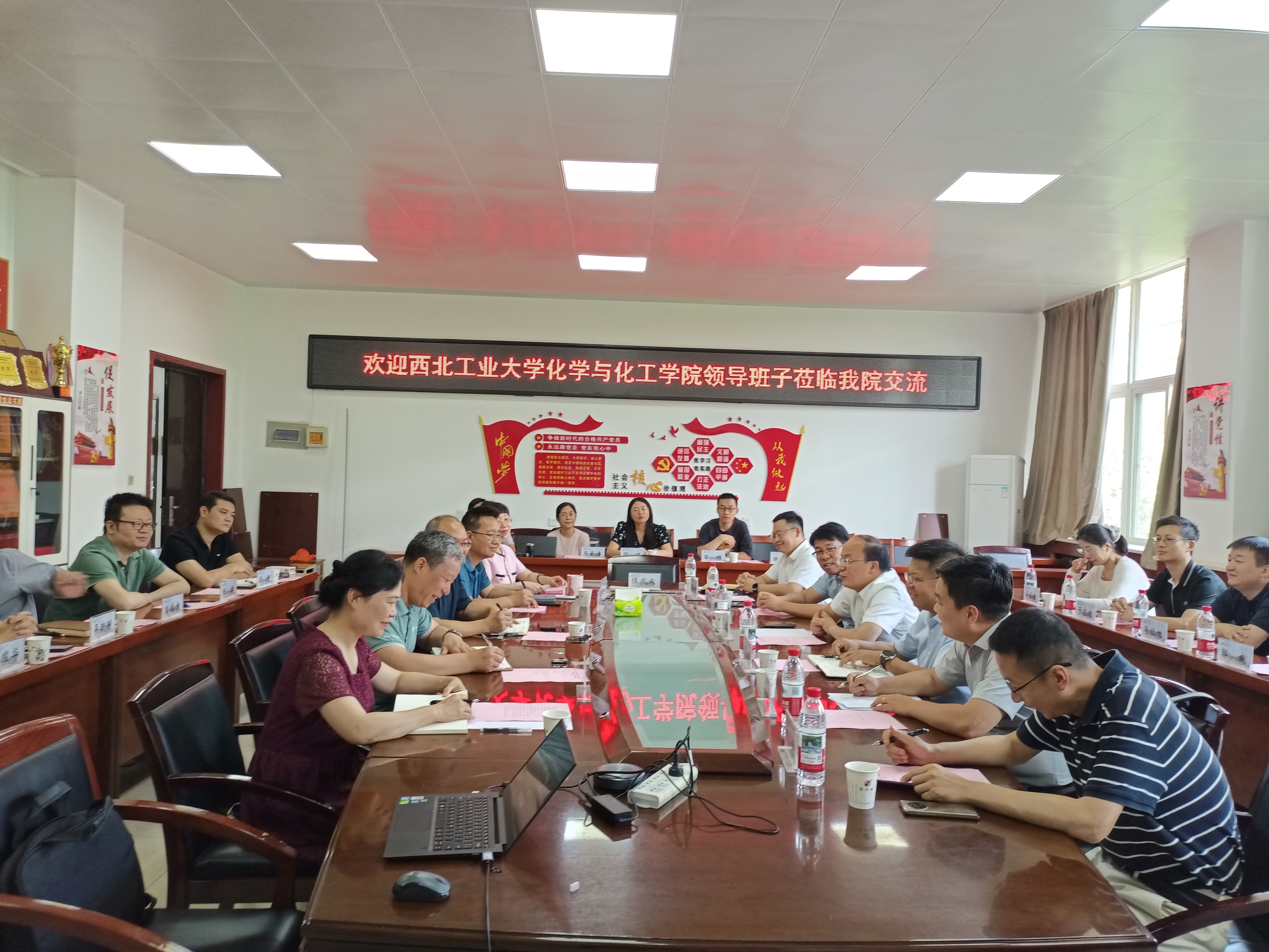 会上,陈卫星对西北工业大学化学与化工学院一行的到来表示热烈欢迎,期望双方学院进一步拓宽交流合作的深度与广度。随后,顾军渭从永利概况、师资队伍、人才培养、科学研究、国际合作等方面介绍了学院的整体情况。他表示,期待以本次交流调研为纽带,充分发挥双方在办学领域的特色与优势,进一步拓展党建联建、科研合作、创新创业及科普育人等方面的合作维度,通过互学互鉴实现协同发展。接着,杨忠从学院发展历程、学科建设、师资队伍、人才培养等方面介绍了学院的基本情况,并希望能够进一步加强合作交流。