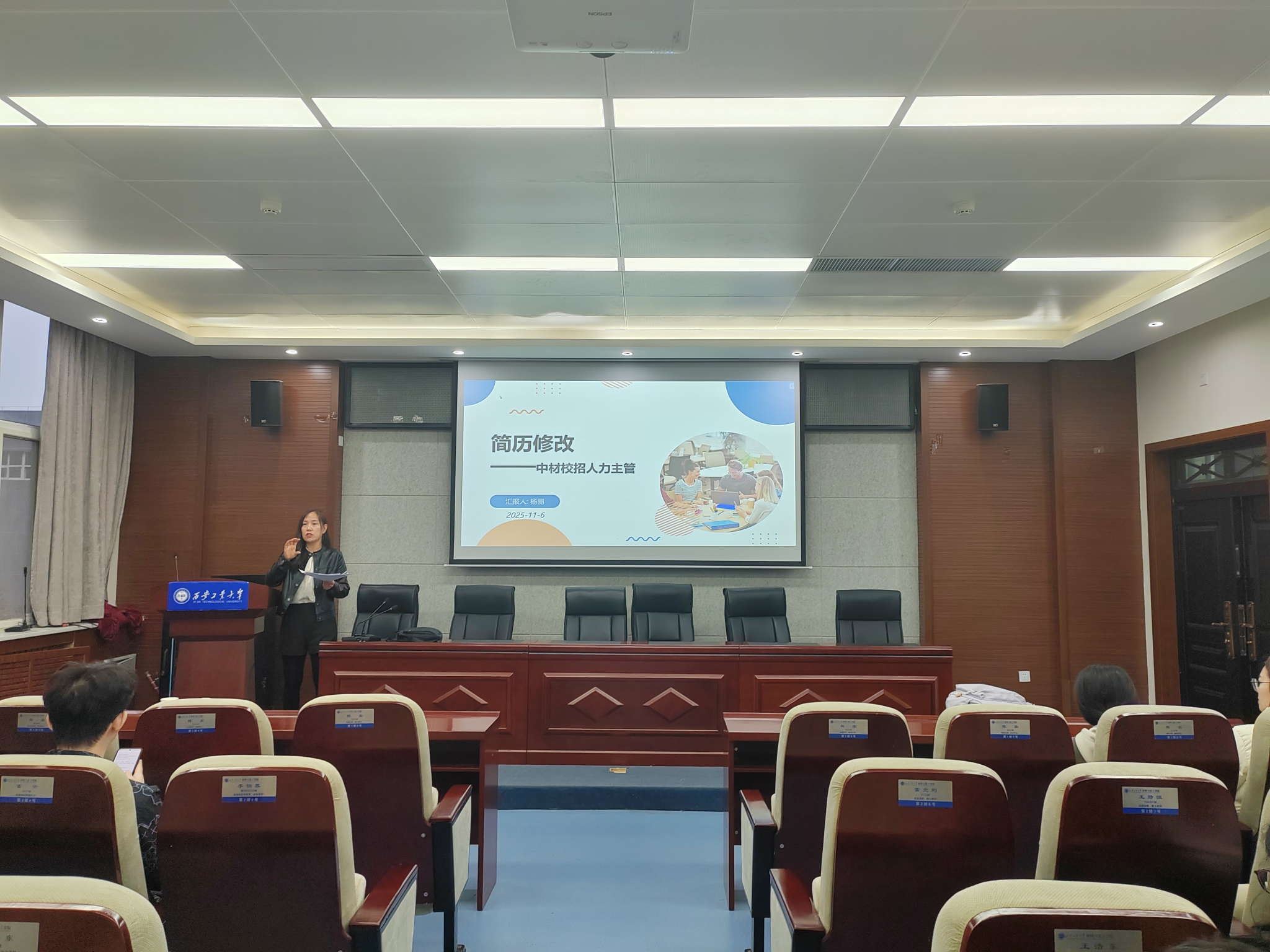 为帮助同学们掌握简历撰写技巧、提高面试通过率,提升我院学生的求职竞争力,11月6日下午,学院特邀中材科技风电叶片股份有限公司人力主管杨丽女士开展了一场简历修改与面试指导专题讲座。本次活动旨在通过行业资深人事的专业视角,为同学们的求职之路精准赋能。