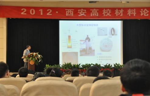 9:00-9:15 “2012·西安高校材料论坛”开幕式正式举行,长安大学副校长刘伯权致开幕辞。刘校长向出席此次论坛的代表表示欢迎,并介绍了长安大学概况及此次活动的目的及意义。出席代表主要有:长安大学李佩成院士、西北工业大学介万奇教授、西安交通大学单智伟教授、长安大学陈拴发教授、西北工业大学材料学院副院长李文亚教授、西北工业大学材料学院党委副书记闫伟老师、西安理工大学游才印教授、长安大学研究生部部长刘来君老师、长安大学学生创新创业教育委员会办公室主任郭军杰老师及各大高校研究生会代表。