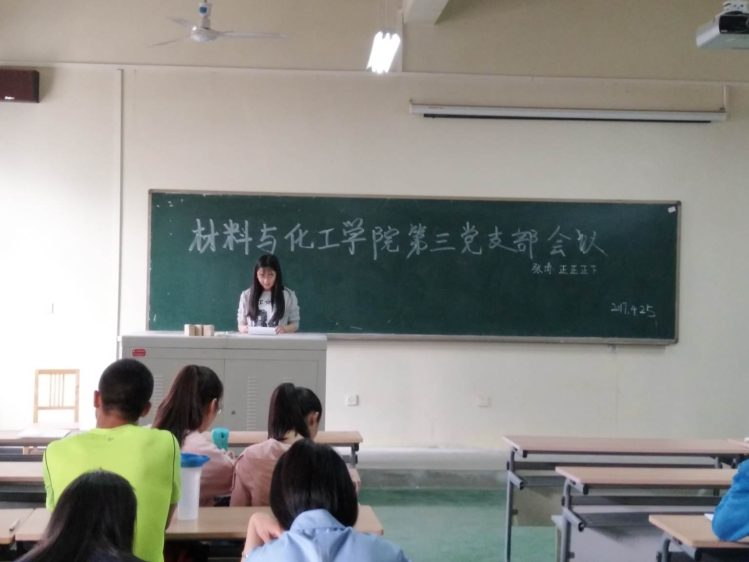 2017年4月25日下午17:20,永利23411集团第三学生党支部在工3-504召开了支部第三次会议,参加本次会议的有支部书记段强老师及党支部全体成员。会议主要讨论张清、唐凤同志能否如期转问题。