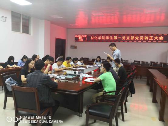 会议由学生党支部书记王国栋老师主持,首先由申请转正的预备党员宣读自己的转正申请,详细汇报了自己在预备期间的表现,并对自己从思想、学习和工作上的进步与不足作了认真的分析。随后,培养人对申请转正的预备党员一年来的表现做出总结,并对其是否具备转正资格表明意见。然后,支部成员分别就与会姚瑜等6名预备党员能否转为正式党员进行讨论,并进行无记名投票。