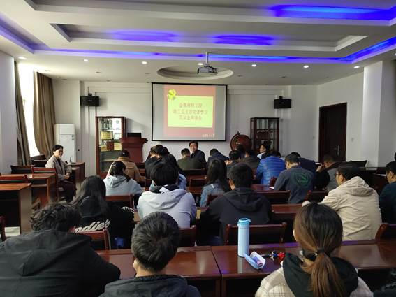 为深入贯彻落实“不忘初心、牢记使命”主题教育,永利23411集团金属材料教工党支部党课学习暨学生第二党支部学生座谈会于2019年11月8日中午在工3-404报告厅召开,教工党支部书记梁艳峰、教学副院长郭永春、学生第二党支部书记张瑞红,金属材料教工党员、学生第二党支部全体党员以及2018级发展对象学生参加了座谈会。