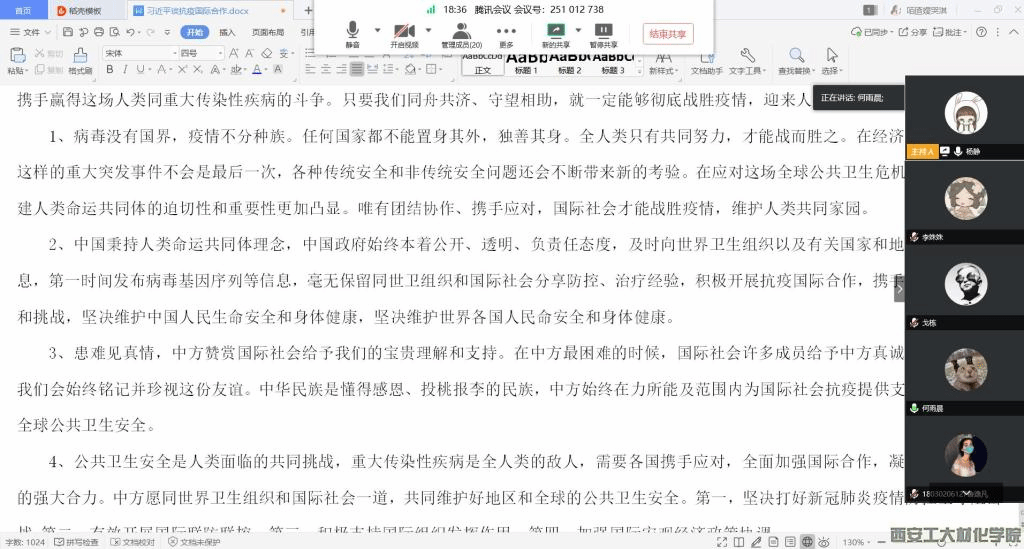 人类是一个命运共同体、战胜关乎各国人民安危的疫病,团结合作是最有力的武器。2020年4月21日,永利23411集团学生第三党支部通过线上学习的方式,组织学习有关习近平总书记谈抗疫国际合作的内容。支部书记段强老师以及支部全体党员参加此次组织生活会。
