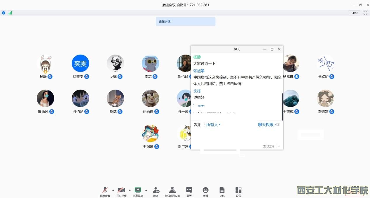 本次活动由支部副书记杨静主持。首先,一段不到五分钟的短片-《决胜:为人民而战》带全体党员一起回顾在这场艰苦卓绝的战疫中“人民”的分量。3万余工人从全国各地赶到武汉,火神山医院从开始设计到建成完工,历时仅十天;军队再次支援湖北的1200名医护人员到达武汉后,仅用50多个小时就开始接收第一批患者;截至三月十日,全国已有7436万党员自愿捐款;我国口罩日产达到1.1亿只。每个事例都在讲述人民力量的强大。战“疫”,为了人民;信心,来自人民;打赢,依靠人民。随后全体党员共同观看一部短片《习近平讲述的故事之共同战疫》。支部书记段老师表示突如其来的疫情是一场人类的共同的灾难,国际社会团结一致,共同应对才是正确的。观影后,全体党员间进行了交流,党员苏伯涵表示新冠肺炎疫情这场全球公共卫生危机,是对国际合作的考验。希望全球疫情早点结束。