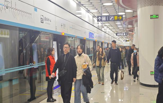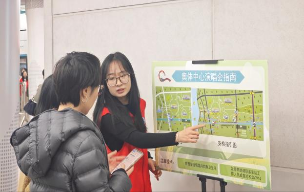 演唱会观众返程高峰时段,各岗位志愿者默契配合、高效联动,始终以饱满的热情、耐心的态度提供服务。红色的志愿马甲在人流中格外醒目,成为地铁站内一道靓丽的“青春风景线”。