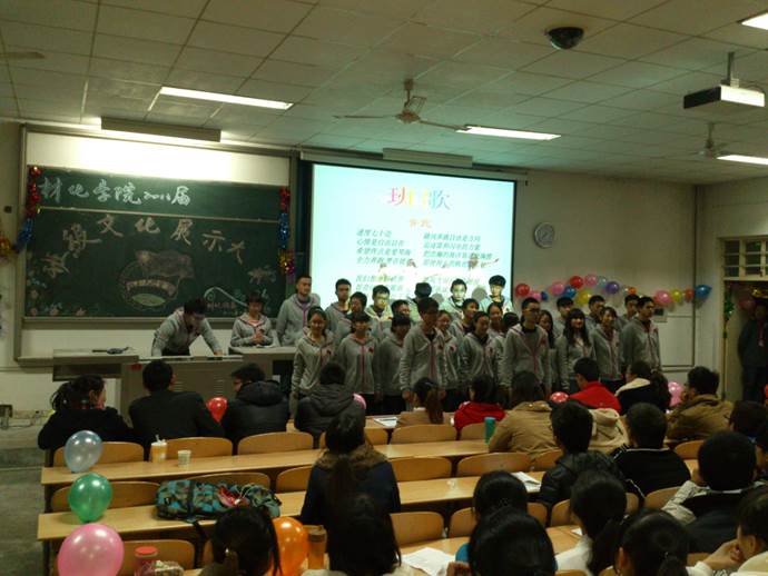 首先,主持人上台宣读开幕词、介绍评委并公布活动评分标准及注意事项。随后,2013级各班按照比赛前抽签的顺序依次上台进行以显示班级魅力、班级风采,弘扬班级文化为主题的PPT、手抄报、班徽、班歌和班服的讲解与展示。在活动进行过程中,同学们被各班精彩的演讲、绝佳的创意、诙谐的语言、动听的歌声和充满激情的介绍所深深打动,都发自内心的为精彩展示的班级鼓掌和喝彩。最后,是最令人期待的颁奖环节,由材化学院团委副书记于海博宣读获奖班级名单,团委往届干部为获奖班级颁发奖状和奖杯,每个人的脸上都洋溢着成功的喜悦,大家纷纷合影留念。