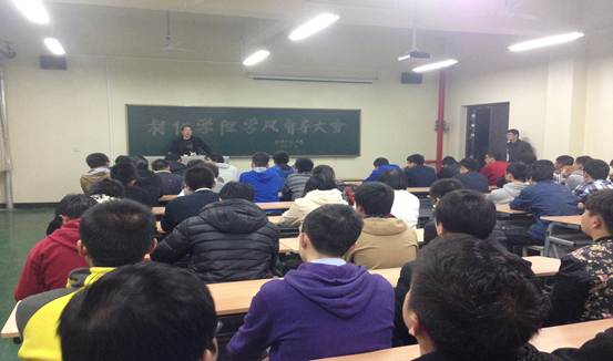 张治宏书记针对留级生这一特殊学生群体,从以下三个方面对同学们进行学风教育。一:端正态度。张治宏书记强调,在学院导员及老师的帮助下留级生应正确认识自我价值,端正学习态度。二:养成良好的学习习惯。首先,同学们应该有一个积极向上的学习心态。其次,应合理利用时间,并在学习中不断反思总结。三:在学习阶段明确目标,做好人生定位。同学们应当尽早明确学习奋斗目标,积极融入新班级,并对自己的学习情况有较清晰的了解。张治宏书记的演讲教育简洁明了,深入人心。为留级生目前迷茫的学习道路指明了方向,为他们日后的学习生活注入了强心剂。同学们认真听讲,积极反思。