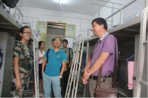 为进一步做好新生入学教育工作,加快新生适应军训,适应大学生活,材化学院本着以学生为本的中心思想,9月7日下午6点由学院党委书记路金龙,副书记张治宏带队,16级辅导员随行,走进新生宿舍,探访慰问新生。