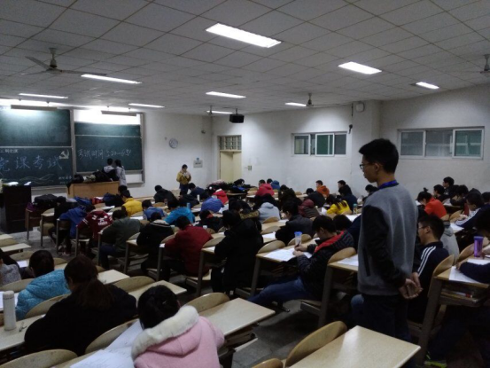 首先,团委所有干事提前入场,安排考生就座,收集考生学习资料,所有考生也积极配合,现场秩序井然。之后,秘书部部长李梦强调本次考试的注意事项和评分标准,大家悉心倾听,趁最后的时间平复考前紧张的情绪。考试过程中,团委监考人员严肃以待,认真解答考生遇到的一些细节性问题,为大家做好保障工作,而考生们在这种安静的氛围中奋笔疾书,争取递交一份完美的答卷。考试结束后,副书记张朋辉给团委所有人员讲解评分细则,接着紧张的阅卷工作便开始了。最后,秘书长张甜甜对本次党课考试进行简单总结,对大家认真监考的态度提出表扬,随后又介绍近期改革的一些事项,并鼓励干事多与其他学生组织交流学习。至此,本次党课结业考试圆满结束!