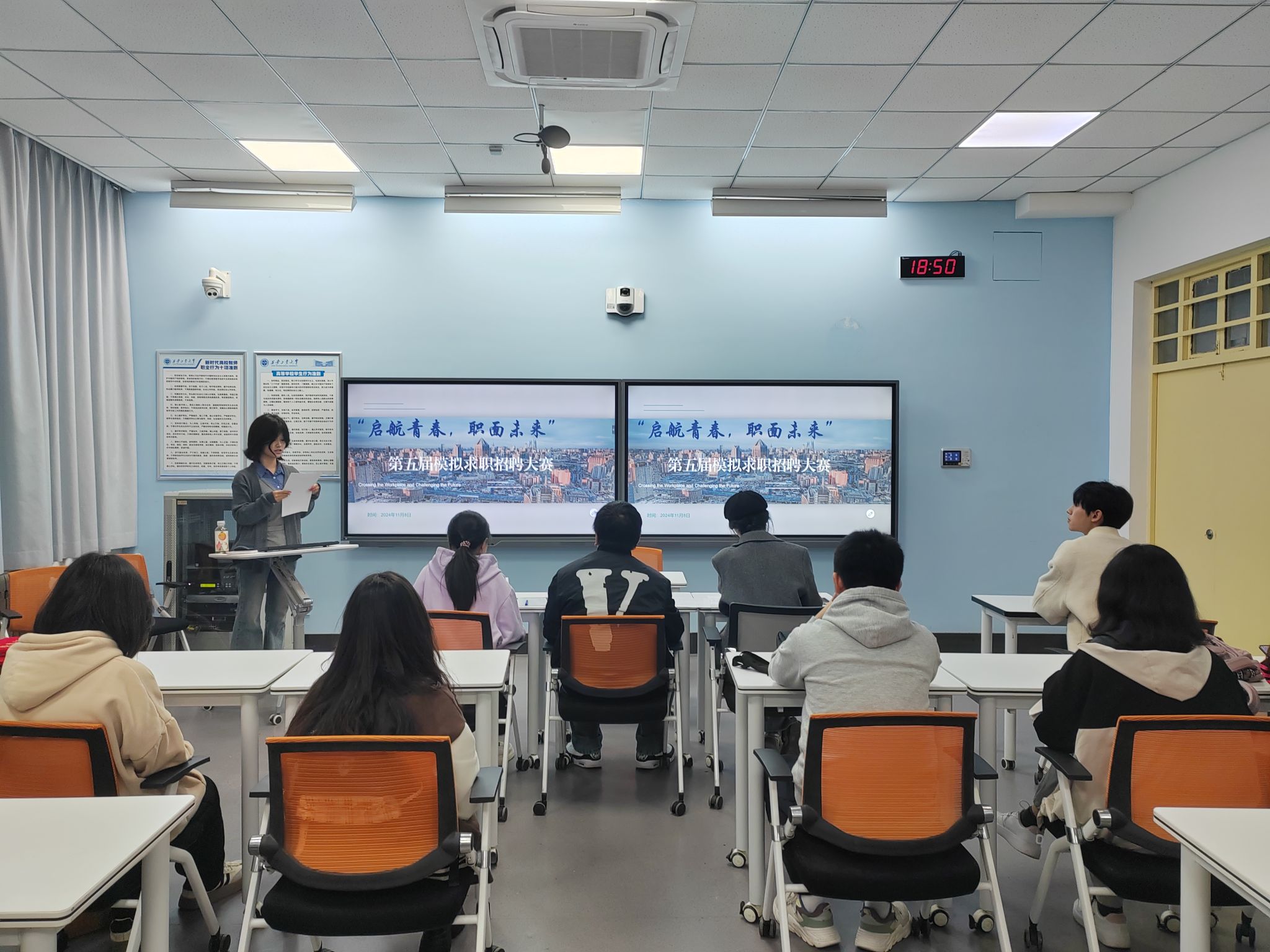 本次大赛从10月下旬开始筹备,初赛经过简历制作的方式,共有10名选手脱颖而出进入到决赛。决赛中采用模拟真实求职过程,选手们通过PPT展示自己的求职意愿、个人优势、职业规划等,并向现场评委展示个人实力和岗位匹配程度。评委从企业的用人需求、专业知识、思维逻辑、求职心态等方面考察了参赛选手的综合素质,并给予一定建议。