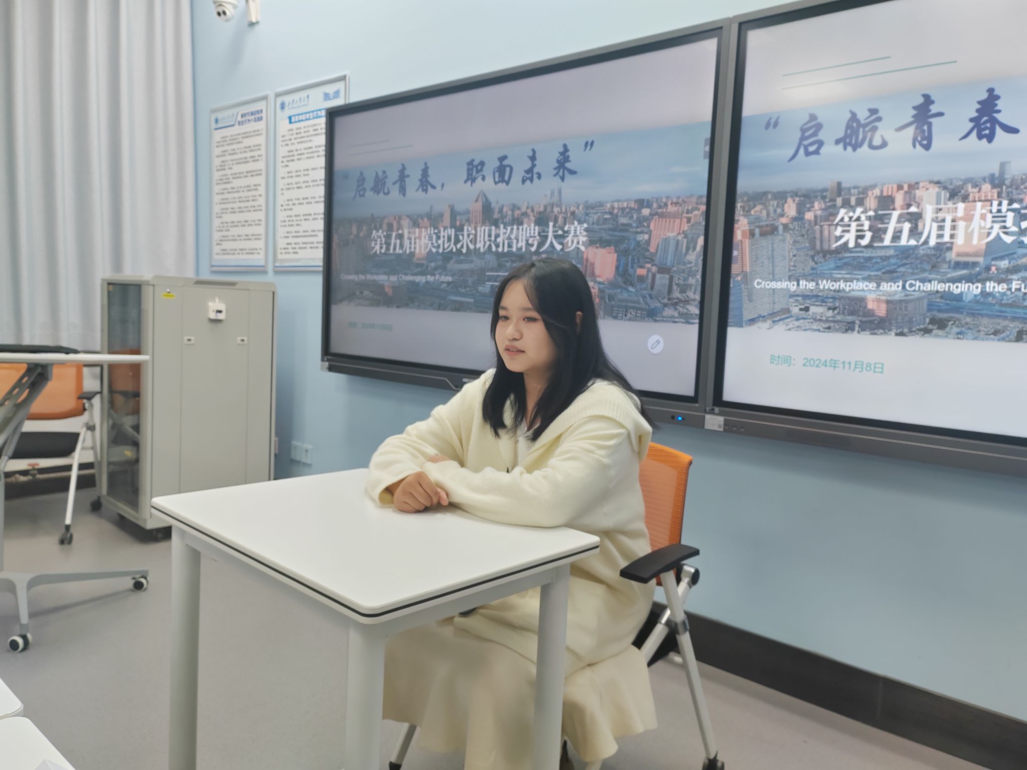 为促进大学生树立正确的求职观和就业观,科学规划自身职业目标,提高求职技能。11月8日,永利23411集团社交与礼仪协会于教3-104举办“启航青春,职面未来”第五届模拟求职大赛。50余名学生参加。