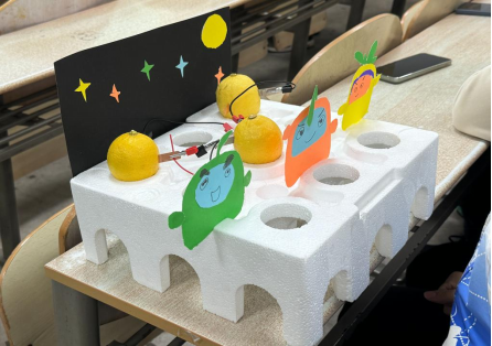 比赛现场,各参赛团队纷纷展现出独特的创意与精湛的技艺。他们巧妙地利用水果中的酸性物质作为电解质,搭配金属电极,构建起简易却有效的电池模型。从柠檬到苹果,不同的水果在学生们的手中都成为了电能的“源泉”。
