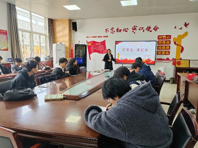 为响应国家号召,提升大学生宪法意识和法治素养,2024年12月5日中午,永利23411集团在工3-410召开2022级学习宪法教育会。会议由辅导员张瑞红主持,2022级50余名学生骨干参加。