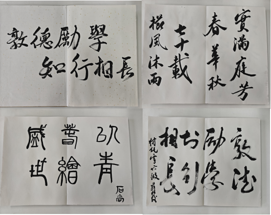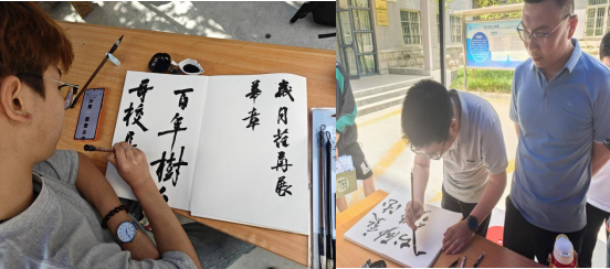 活动现场,软笔书法创作成为一大亮点。学院师生和校友齐聚一堂,挥毫泼墨,以笔寄情。古朴苍劲的楷书、飘逸灵动的行书、豪放洒脱的草书跃然纸上,师生和校友的书法作品既彰显中华传统文化底蕴,又饱含对母校的深情厚谊。