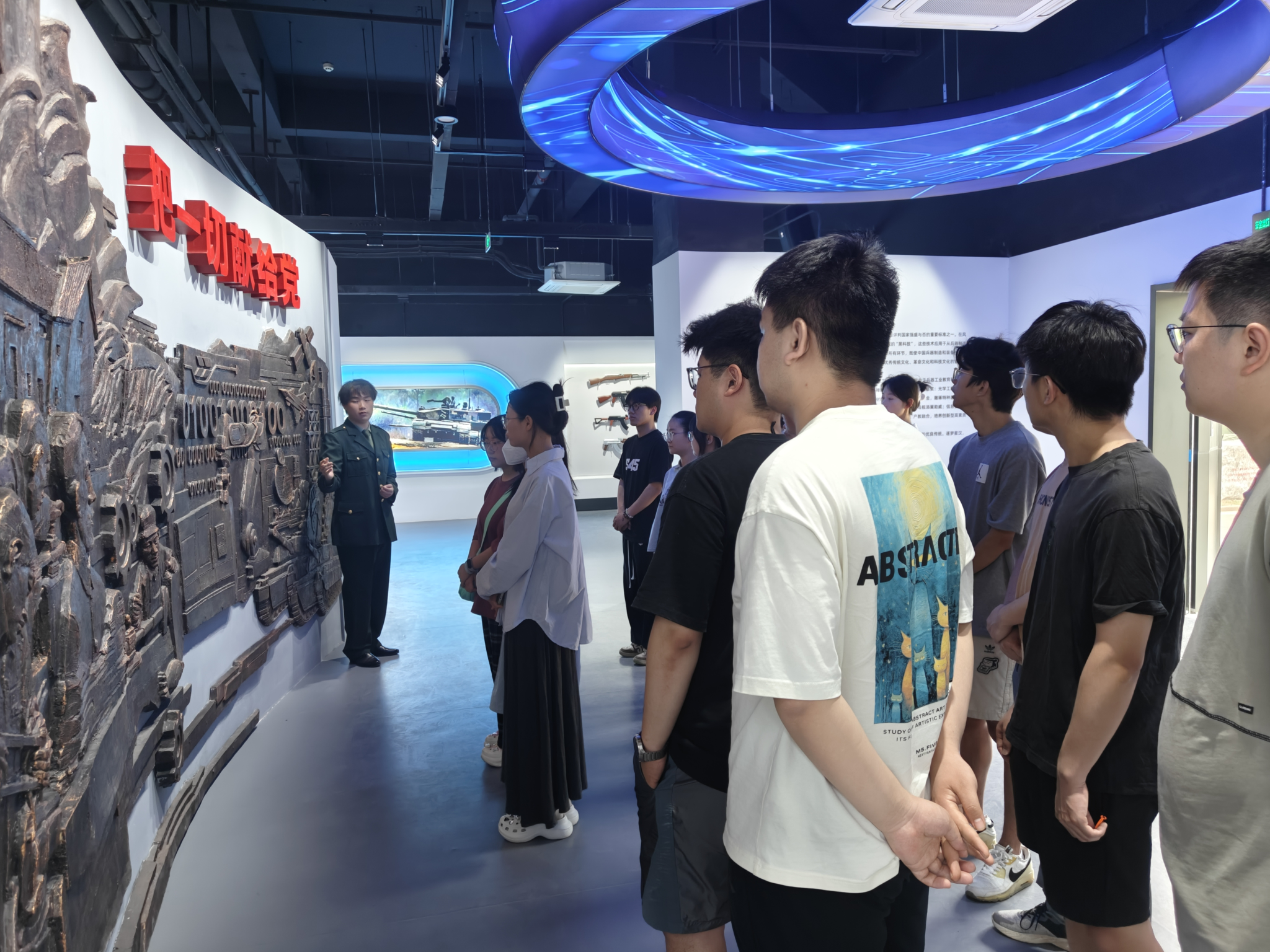 进入馆内,学生们首先被前厅一面“把一切献给党” 主题浮雕所吸引,浮雕生动展现了中国共产党领导人民兵工事业从简单制造逐步发展到研制生产大国重器的辉煌历程,让学生们深刻感受到先辈们为国防事业无私奉献的伟大精神。在序厅,大屏幕播放的视频对学校兵工科研进行了全面介绍,墙面集中展示的三个兵器类专业、六个兵工特色学科以及100余项兵工科研荣誉,彰显出学校在兵工领域深厚的学术底蕴和卓越的科研成就,令学生们赞叹不已。
