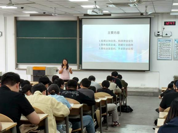 秋意渐浓,就业季的氛围也愈发热烈。为助力毕业生在就业市场中找准方向、理性选择,永利23411集团于9月11日在教1-101隆重召开“锚定方向,理性选择”科学择业筑牢就业起步根基会议。辅导员张瑞红以及2022级全体毕业生参加,为毕业生们开启就业新征程保驾护航。