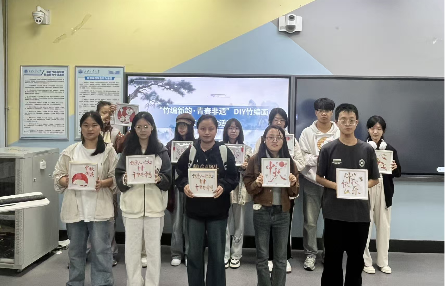 活动以“文化讲解+手工创作+成果展示”的形式有序展开,每一个环节都充满文化气息与青春活力。环节伊始,活动负责人首先带领同学们走进双节文化与竹编非遗的世界:详细阐释中秋“团圆和睦”、国庆“家国情怀”的文化内涵,让学子们深刻领会传统节日的精神价值;同时,系统介绍竹编工艺的历史传承——从古代的实用器具到现代的艺术创作,从非遗技艺的保护现状到创新发展,生动的讲解搭配丰富的图片素材,让同学们对竹编非遗产生了浓厚兴趣,也为后续的手工创作奠定了文化基础。