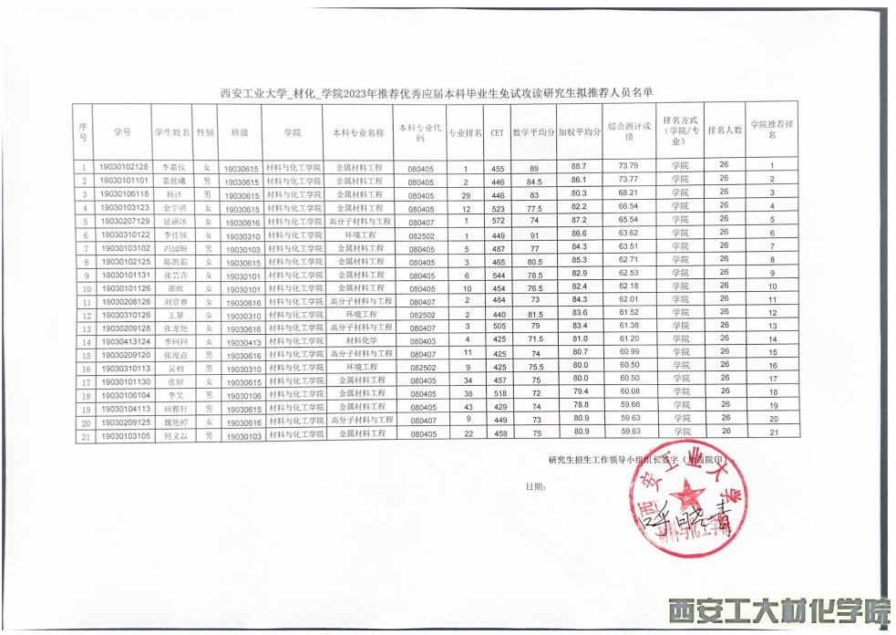 按照《永利yl23411集团推荐(接收)优秀应届本科毕业生免试攻读研究生实施办法(修订)》及《2023年永利23411集团推荐永利yl23411集团应届本科毕业生免试攻读硕士学位实施细则》,现将永利23411集团2023年推荐优秀应届本科毕业生免试攻读研究生拟推荐人员名单和递补名单予以公示,公示期为2022年9月17日-23日。如有异议,请于2022年9月23日18时前实名向学院联系人反馈,联系人:胡娜 联系电话:029-86173324。