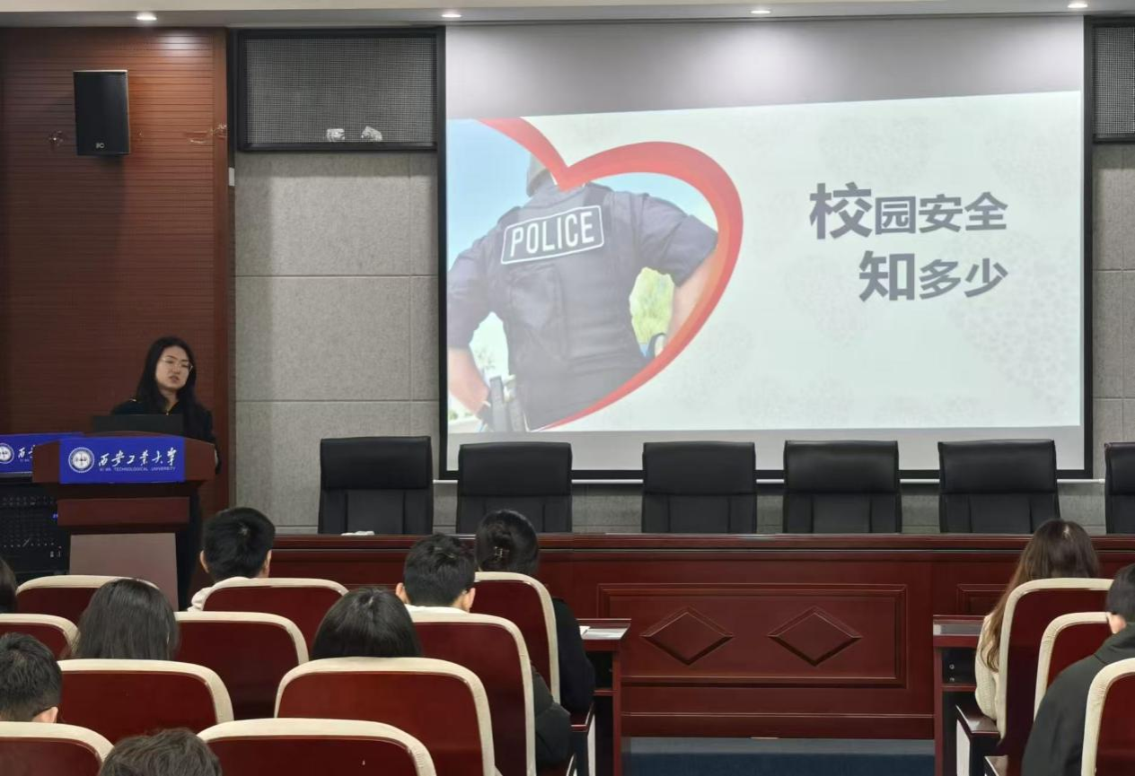 互动环节中,同学们就实验突发情况处理、学业压力调节等问题提问,辅导员耐心解答,并强调:安全不是口号,而是需要内化于心的责任意识。希望每位同学都能成为校园安全的守护者、传播者,鼓励同学们关注自己和他人的心理健康,遇到问题不要害怕,积极寻求帮助,共同营造健康、和谐的校园环境。