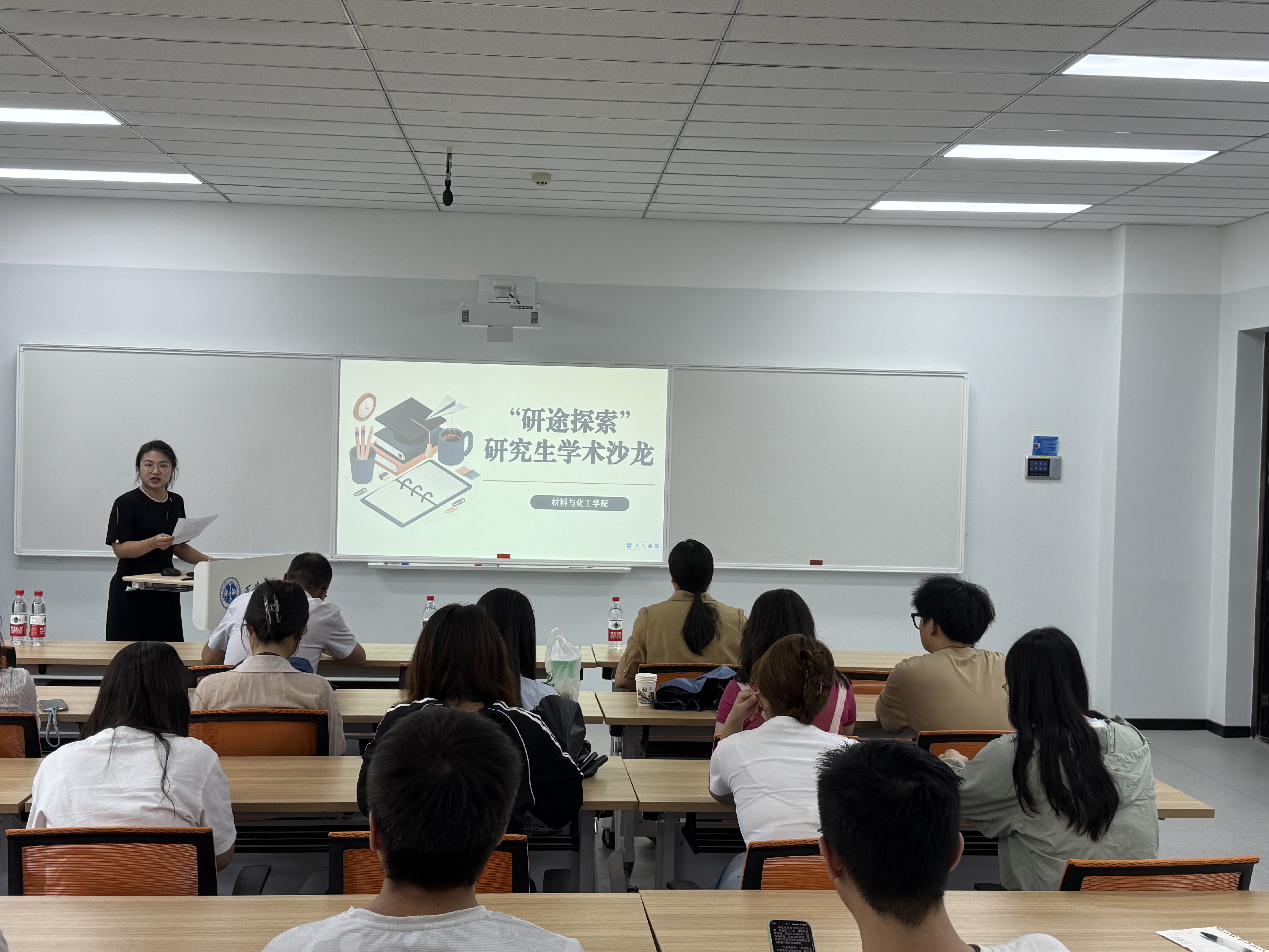 为深化科研创新思维,推动学术前沿探索,2025年6月13日,永利23411集团在工3-304举办了主题为“功能高分子材料前沿探索”的学术沙龙活动。本次活动由研究生辅导员张启妍老师主持,特邀陈卫星教授、周宏伟教授、罗春燕副教授担任点评嘉宾,并邀请学院优秀研究生代表王珂萱、吴萍、马雪浩、李笑进行科研成果分享,研究生辅导员胡娜及学院研究生三十余人参与。