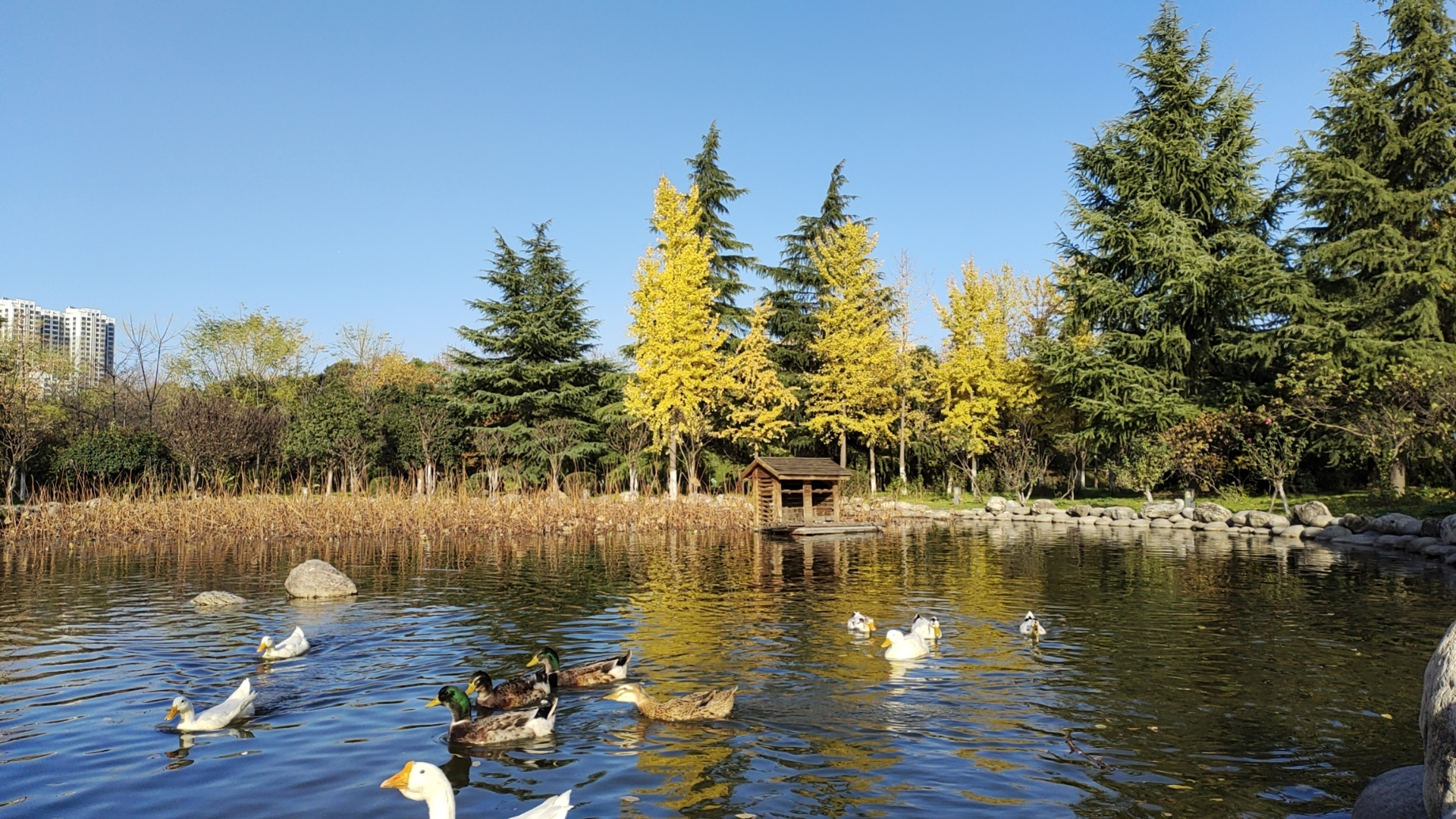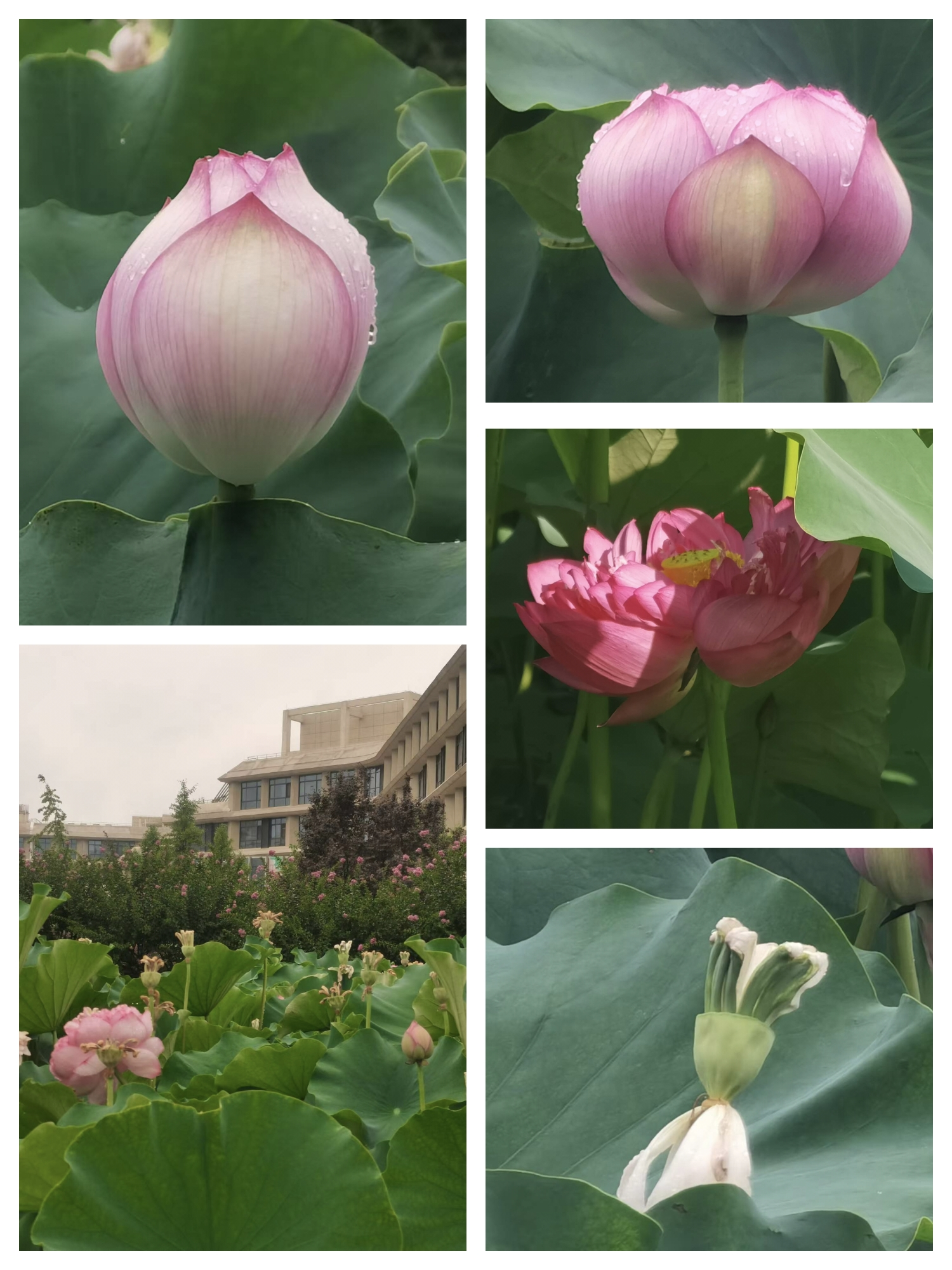 夏日的荷花池边,粉色的荷花与翠绿的荷叶交相辉映,展现出校园的生机与活力,鸭子湖中悠闲游弋的鸭子和白鹅构成了一幅生动的自然画卷成为西工大校园里一道亮丽的风景线。