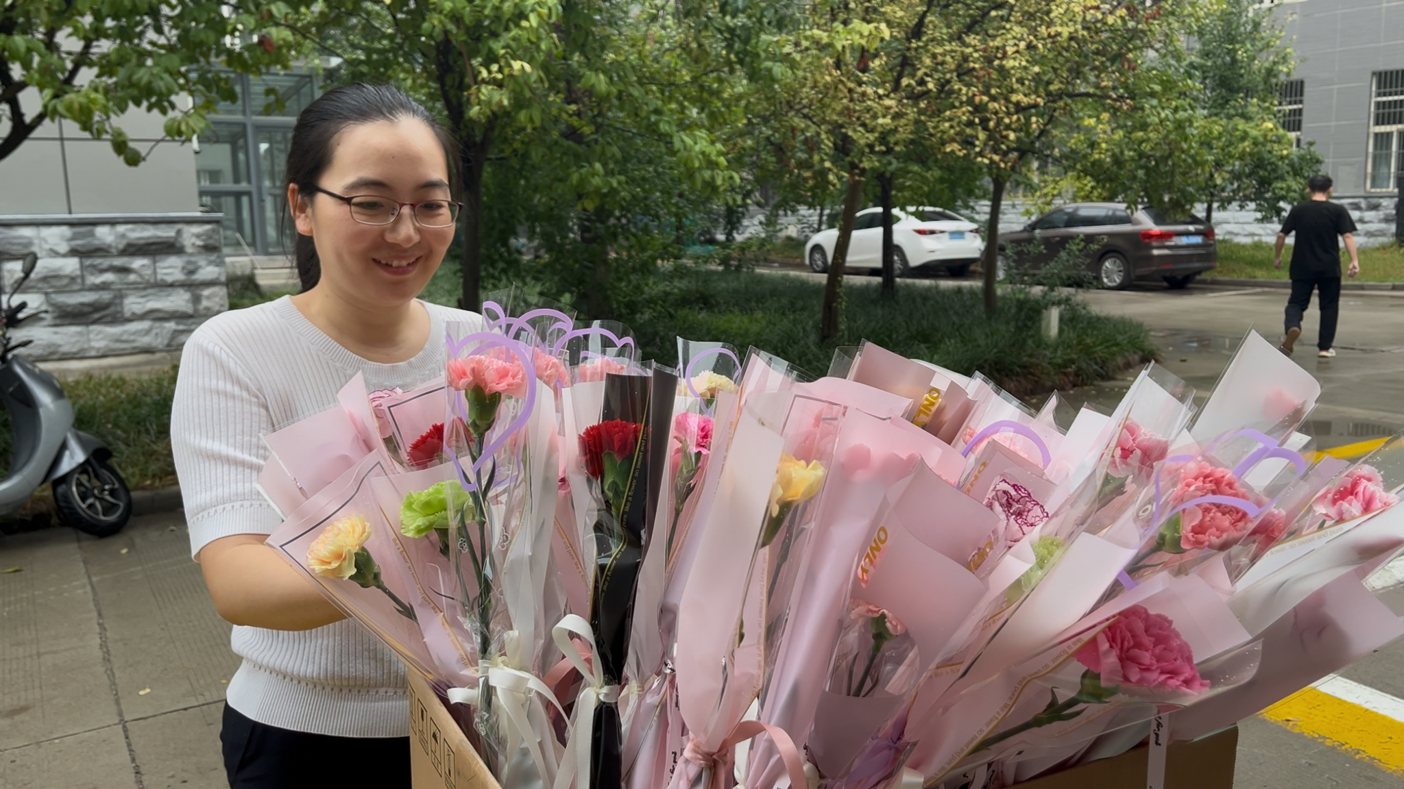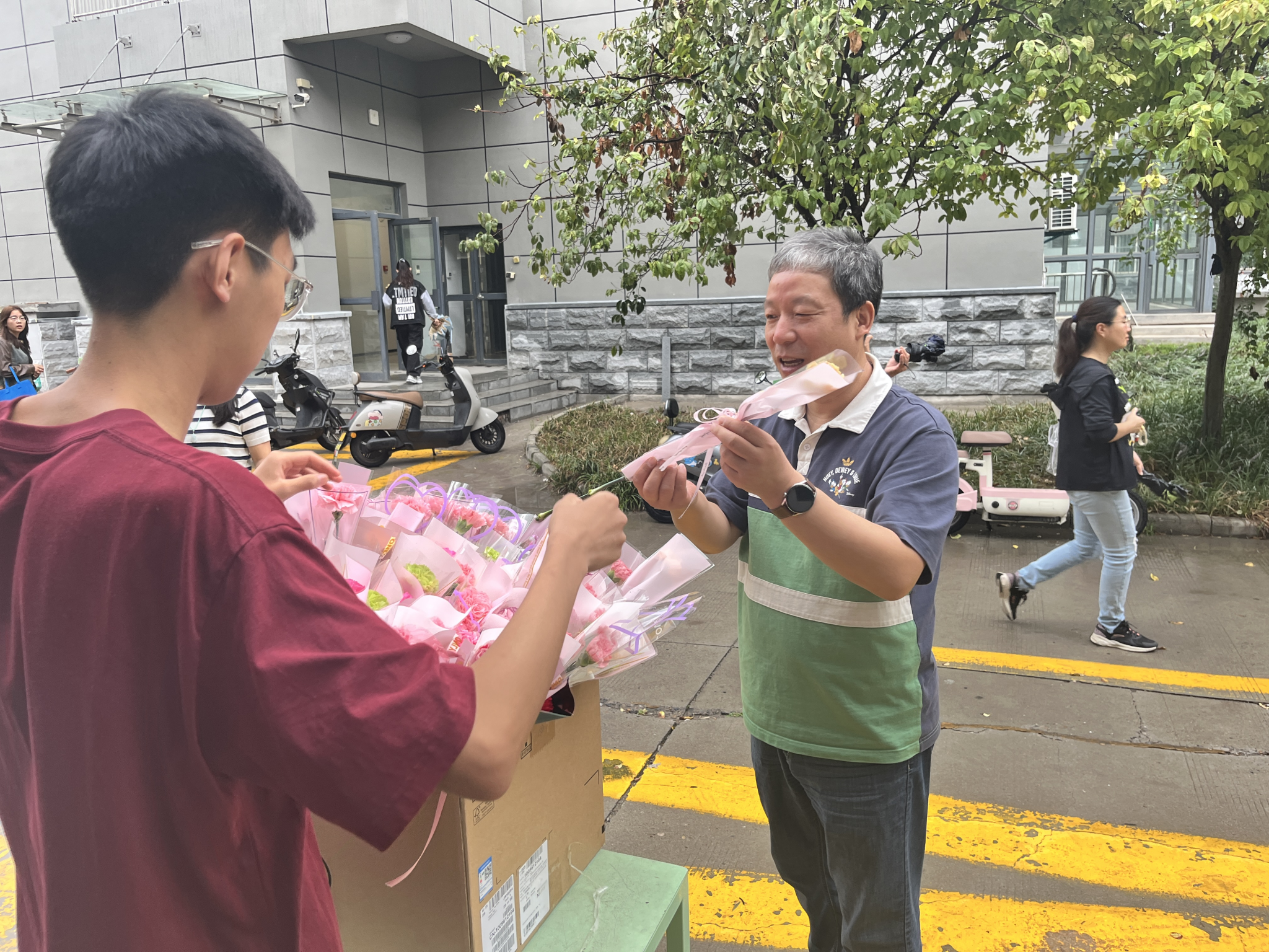 老师们一边欣赏着手中的鲜花,一边与学生、工会工作人员亲切交流,校园里处处充满了温馨和谐的氛围。一支鲜花,承载着一份深厚的情意;一次活动,传递着一份浓浓的关怀。此次“鲜花赠恩师”主题活动,不仅以质朴而温暖的方式弘扬了“尊师重教”的优良传统,让全院教师在节日中感受到了来自学院的重视与关爱,更拉近了师生之间的距离。活动所营造的浓厚节日氛围,不仅增强了教师们的职业自豪感与归属感,也为新学期学院各项工作的开展注入了暖心的动力。未来,我院将继续以更多元、更贴心的方式关怀教师群体,为打造更有温度、更有凝聚力的校园环境而不懈努力。